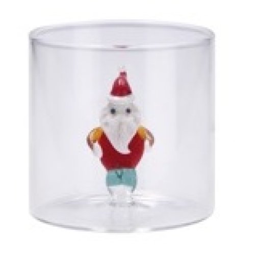Aggiungi un tocco di eleganza e originalità alla tua tavola con questo esclusivo bicchiere in vetro decorato con una figura 3D natalizia all’interno.