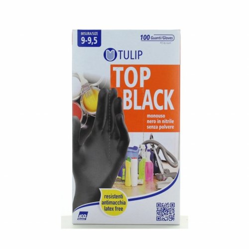 100 Guanti in nitrile nero Tulip Top Black senza polvere taglia XL