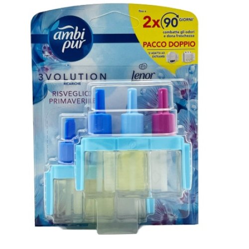 Scopri la freschezza floreale di Ambi Pur 3Volution Risveglio Primaverile con Lenor. Questo pratico pacco doppio contiene 2 ricariche compatibili con il diffusore elettrico Ambi Pur 3Volution, per un totale di fino a 180 giorni di freschezza. Ogni ricarica alterna automaticamente 3 fragranze complementari ogni 45 minuti, impedendo l’assuefazione olfattiva e garantendo un ambiente sempre profumato e pulito.