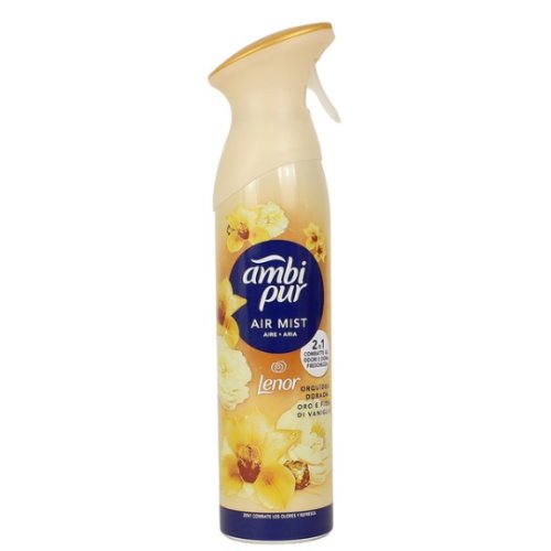 AmbiPur Air Deodorante 2in1 Oro e Fiori di Vaniglia è lo spray studiato per eliminare i cattivi odori e diffondere un’immediata sensazione di freschezza negli ambienti.