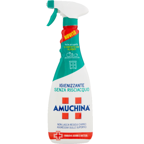 Amuchina Senza Risciacquo Igienizzante è l'alleato ideale per l'igiene delle piccole superfici della casa: rimuove germi e batteri da tavoli, sedie, piani di lavoro, seggioloni, fasciatoi, comodini, mensole. La sua formula non lascia residui chimici aggressivi sulle superfici, non necessita di risciacquo ed è adatta anche per le superfici che vanno a contatto con gli alimenti.