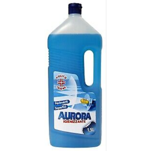 Aurora Igienizzante detergente per pavimenti e superfici lavabili ideale per la pulizia di tutta la casa. Pulisce a fondo, rimuove tutto lo sporco e agisce anche come deodorante.