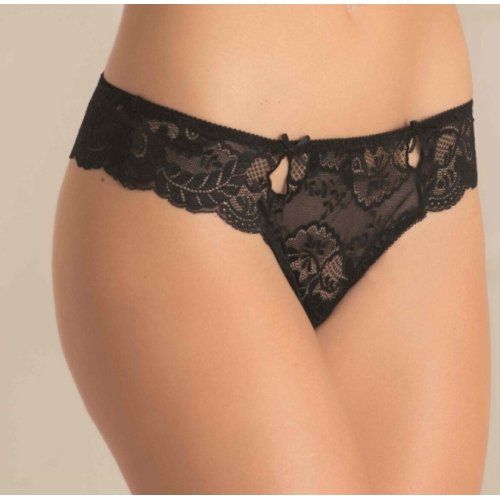 Il taglio brasiliano dona un tocco sensuale e femminile, mettendo in risalto la silhouette senza risultare eccessivo. Il pizzo, ricco di dettagli e finemente lavorato, aggiunge un fascino raffinato, mentre il colore nero rende questo modello perfetto per chi cerca un intimo classico, versatile e irresistibile.
