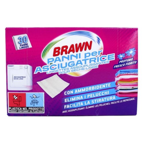 I Panni per Asciugatrice BRAWN con profumo Fresco Fiorito sono la soluzione ideale per avere capi morbidi, profumati e privi di elettricità statica al termine dell’asciugatura. Grazie alla formula con ammorbidente incorporato, questi panni eliminano i pelucchi, facilitano la stiratura e lasciano un gradevole profumo floreale sui tessuti.