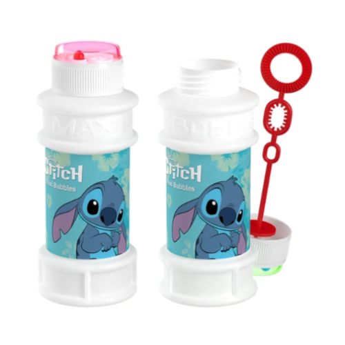 BUBBLES STITCH 46912" fa riferimento a un articolo, probabilmente un giocattolo o un gadget, legato al personaggio Disney Stitch (di Lilo & Stitch). Sembra essere un articolo come un ombrello pieghevole o un giocattolo "bolle" (sparabolle/bolle di sapone) di piccolo valore.
