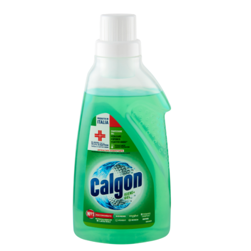 Calgon Igiene+ Gel Anticalcare Disinfettante per lavatrice 750 ml.Meno del 5 % di policarbossilati, tensioattivi non ionici, disinfettante, profumo e componenti quali limonene e hexyl cinnamal.