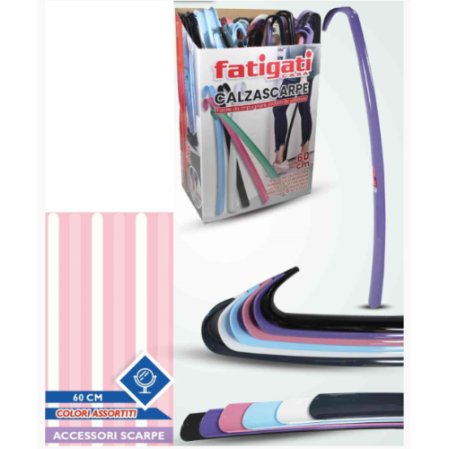 Permette di infilare le scarpe senza doversi chinare o piegare e può essere appeso (ad esempio a una parete o dietro una porta) grazie a un foro, occhiello o gancio integrato.