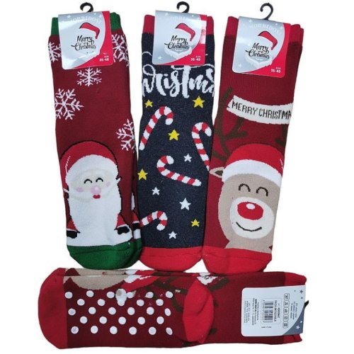 CALZINO ANTISCIVOLO DONNA IN CALDO COTONE A TEMA NATALIZIO ART.HS610 - FANTASIE ASSORTITE