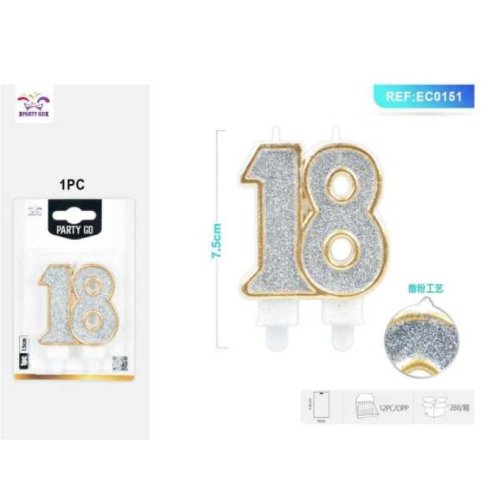 Celebra il compimento dei 18 anni con stile grazie a queste eleganti candeline glitterate color argento, perfette per decorare torte e dolci durante feste e compleanni.