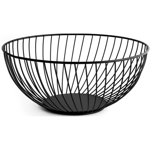 - Design Industrial-Chic: La struttura è realizzata in filo di ferro verniciato (solitamente nero o antracite), caratterizzata da una trama aperta che dona leggerezza visiva e permette di intravedere il contenuto.