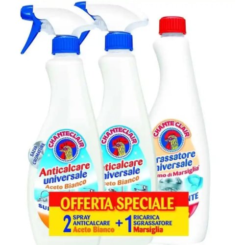 Chanteclair – Duo Pulizia Casa: Anticalcare Aceto Bianco Spray 625 ml + Ricarica Sgrassatore Universale Profumo di Marsiglia 625 ml