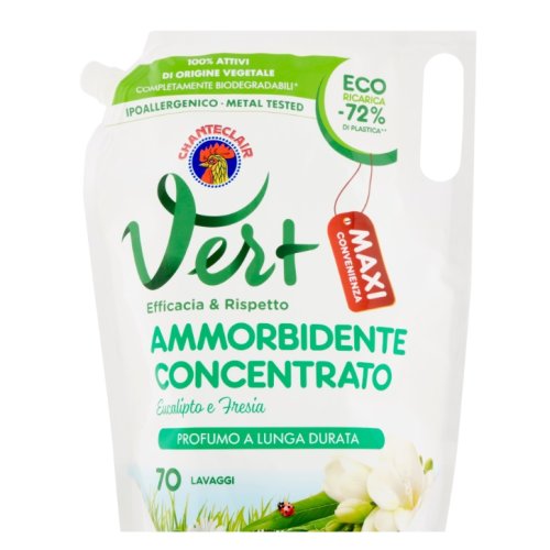 Chanteclair Vert Ammorbidente Concentrato Eucalipto e Fresia è un ammorbidente ecologico e concentrato, formulato con 100% attivi di origine vegetale e completamente biodegradabile. Ideale per chi desidera un bucato morbido, fresco e rispettoso dell’ambiente.
