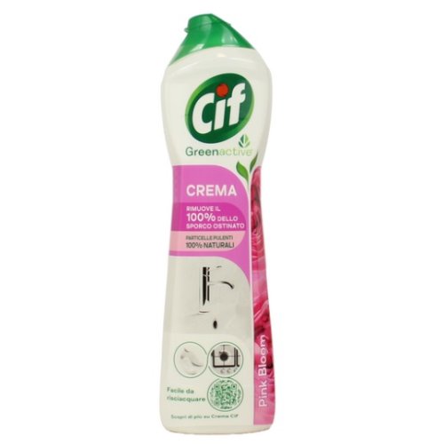 Rimuovi sporco ostinato e macchie senza fatica con Cif Green Active Crema Pink Bloom 500 ml.