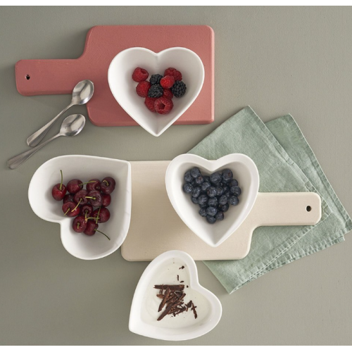 La ciotola a forma di cuore in ceramica con dimensioni di 13x12,5x4,5 cm è un elegante complemento per la tavola, ideale per servire piccoli antipasti, dessert o come elemento decorativo.