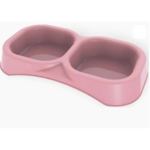 Prodotto: ciotola doppia per cani (due scomparti, solitamente per cibo + acqua) con forma ovale o leggermente allungata, progettata per garantire comodità durante l’alimentazione.