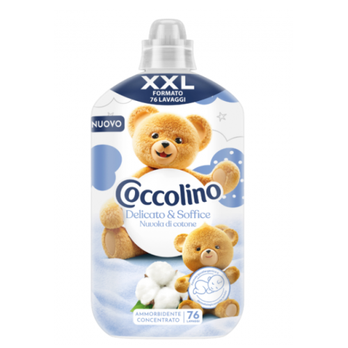 Il prodotto a cui fai riferimento è l'ammorbidente concentrato Coccolino Ammorbidente Concentrato Delicato e Soffice Nuvola di Cotone, disponibile in un formato da circa 1750 ml (spesso etichettato come 76 lavaggi).
