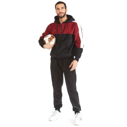 La felpa presenta un colletto alto, tasche laterali funzionali e polsini elasticizzati, mentre i pantaloni garantiscono una vestibilità ottimale grazie alla vita elasticizzata con coulisse regolabile. Il design sobrio e versatile lo rende un completo adatto a ogni occasione casual.