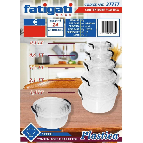 Il set di contenitori in plastica Fatigati Casa è una soluzione versatile per l'organizzazione della cucina e la conservazione degli alimenti.