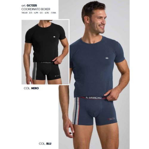 GRANCHIO - COORDINATO UOMO MAGLIETTA+ BOXER ART.GC1325 - COLORI ASSORTITI