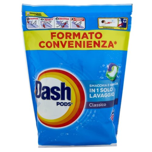 Dash PODS Classico è un detersivo per lavatrice in capsule monodose, progettato per offrire una pulizia profonda, efficace e pratica in ogni lavaggio. La formula PODS racchiude tre azioni principali in una sola capsula: smacchiare, igienizzare e profumare i tuoi capi. Questa versione è il formato convenienza, ideale per chi desidera risparmiare senza rinunciare alla qualità Dash.