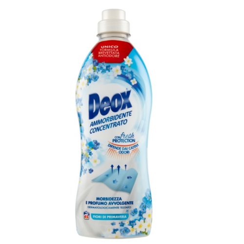 Deox Ammorbidente Concentrato Fiori di Primavera offre morbidezza e un profumo avvolgente con una formula brevettata antiodore, studiata per difendere i tessuti dai cattivi odori.