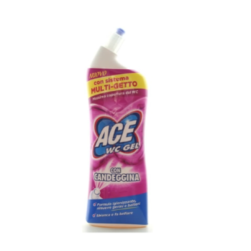 Ace Wc Gel con candeggina profumata elimina i cattivi odori e grazie all'innovativo sistema multi-getto igienizza il wc anche nei punti più difficili da raggiungere.