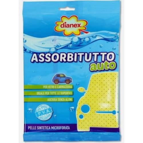 l Dianex Assorbitutto Auto è un panno ad altissimo potere assorbente, ideale per asciugare vetri, carrozzeria e tutte le superfici della tua auto. Realizzato in pelle sintetica microforata con tecnologia P.V.A., garantisce un’asciugatura rapida e uniforme, senza lasciare aloni o striature.