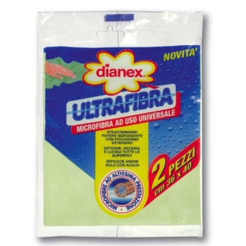 Dianex Ultrafibra Panno Microfifra Uso Universale 2 Pz: Il panno in nicrofibra ad altissima prestazione , non graffia, per uso universale. Straordinario potere sgrassante con pochissimo detersivo. Deterge, lucida ed asciuga tutte le superfici. Efficace anche solo con l'acqua.