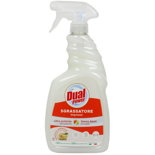 Il Dual Power Sgrassatore Professional al profumo di Marsiglia è un detergente ultra potente con azione sgrassante immediata, studiato per rimuovere grasso ostinato, incrostazioni e sporco da tutte le superfici lavabili.