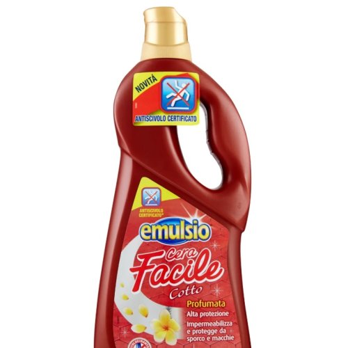 Emulsio Cera Facile Cotto Profumata è una cera liquida appositamente formulata per pavimenti in cotto, ideale per esaltare la bellezza naturale di questo materiale poroso. Grazie alla sua formulazione antiscivolo certificata, garantisce sicurezza, protezione e un effetto impermeabilizzante, contribuendo a mantenere i pavimenti puliti più a lungo, resistenti a macchie e sporco.