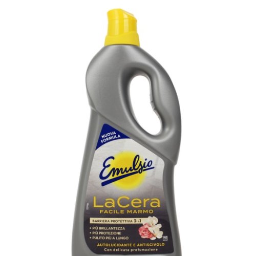 Emulsio LaCera Facile Marmo è una cera liquida specificamente studiata per pavimenti in marmo. Grazie alla sua barriera protettiva 3 in 1, assicura una maggiore brillantezza, protezione efficace e un pulito che dura più a lungo. La formula è autolucidante e antiscivolo, garantendo sicurezza e facilità d’uso, con una delicata profumazione che lascia un piacevole aroma nell’ambiente.