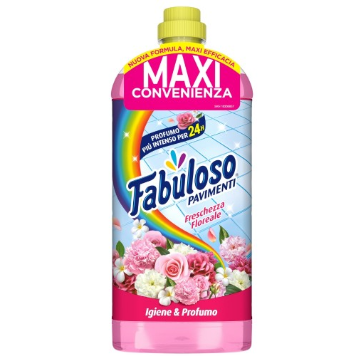 Fabuloso Freschezza Floreale Detergente Pavimenti 1.250 Lt. Il detergente profumante Fabuloso Freschezza Floreale rimuove lo sporco e sgrassa facilmente lasciando un fresco profumo di pulito. E'adatto a cucina, bagno, pavimenti e tutte le superfici lavabili.
