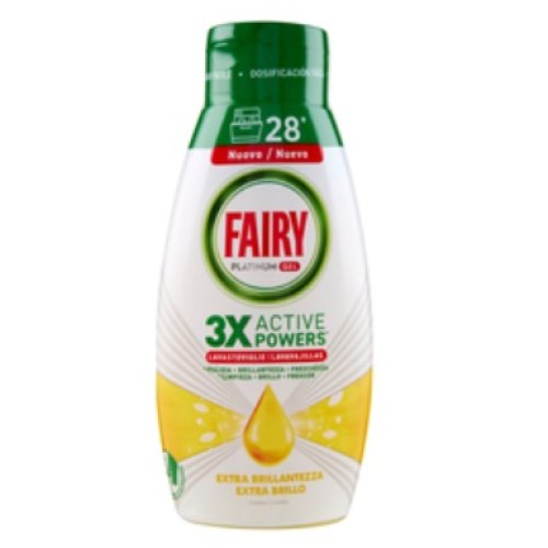 FAIRY PLATINUM GEL LAVASTOVIGLIE EXTRA BRILLANTEZZA AL LIMONE 28 LAVAGGI 504 ML