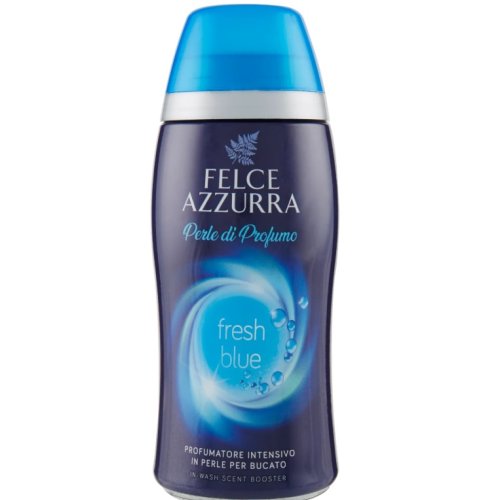 Felce Azzurra Perle di Profumo Fresh Blue è un profumatore intensivo in perle, studiato per donare al bucato una fragranza intensa e duratura durante il lavaggio. Le perle si sciolgono delicatamente in lavatrice, rilasciando una fresca profumazione blu che avvolge i tessuti senza appesantirli.
