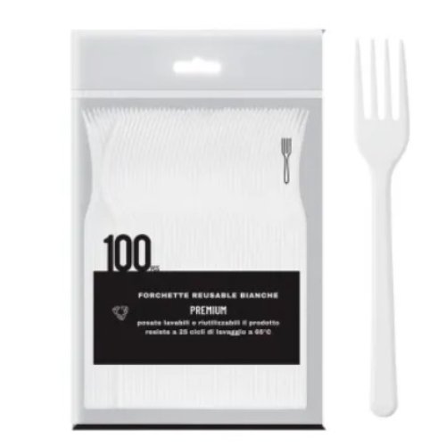 FORCHETTE IN PLASTICA BIANCHE - 100 PEZZI