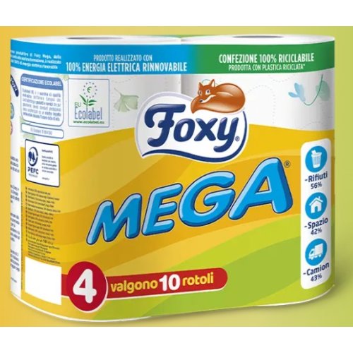 Foxy MEGA è la carta igienica compatta e ad alta resa pensata per ridurre sprechi e ingombri, mantenendo la qualità e la morbidezza che da sempre contraddistinguono i prodotti Foxy.