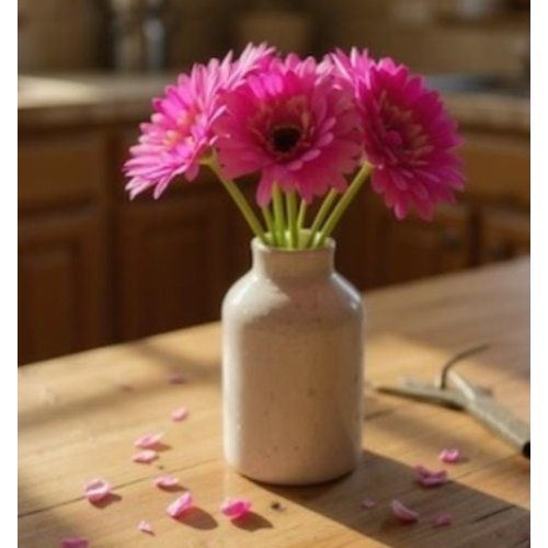 - Design: Fiori realizzati con petali in poliestere di alta qualità, che riproducono fedelmente la texture e le sfumature accese della gerbera naturale. Il colore fucsia intenso dona energia e profondità a ogni composizione.