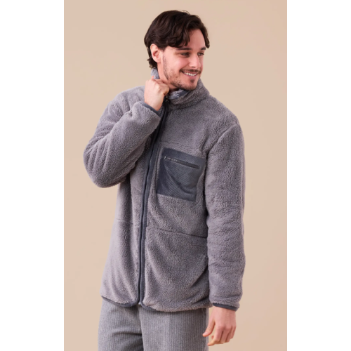 Chiusura a zip e collo alto per un abbraccio totale e carezzevole. Una pregevole lavorazione bicolore gli conferisce un deciso tocco di giovanilita' nei modi dell'homewear.