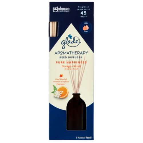 Il diffusore a bastoncini Glade Aromatherapy Reed Diffuser Pure Happiness è un elegante sistema di profumazione per ambienti, progettato per diffondere una fragranza naturale e duratura senza l’uso di fiamme o elettricità.