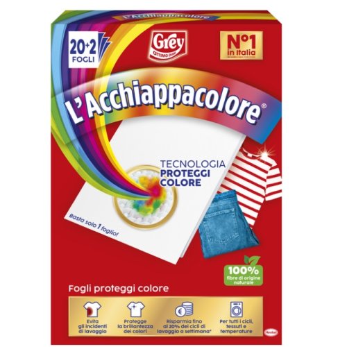 Acchiappacolore Grey è il sistema efficace per proteggere e mantenere i colori dei tuoi capi durante il lavaggio.