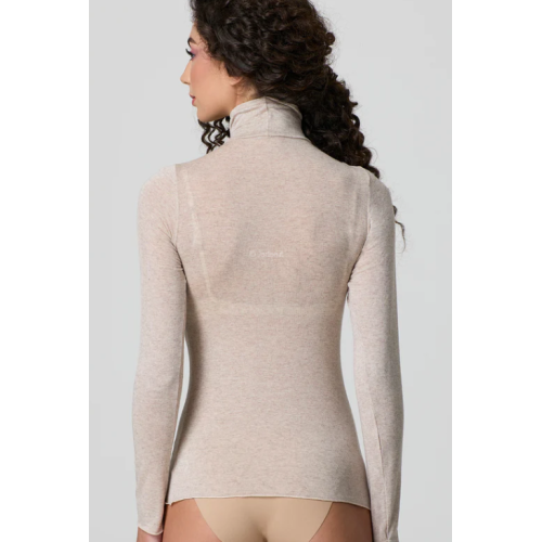 Il modello dolcevita con manica lunga protegge dal freddo mantenendo un design elegante e versatile. Il colore naturale, chiaro e luminoso, si abbina facilmente a molteplici outfit, dal casual al formale.