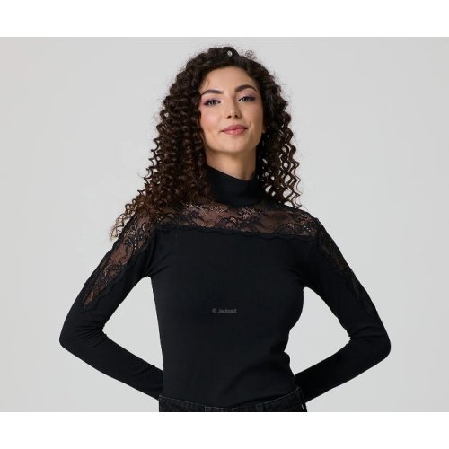JADEA MAGLIA DONNA LUPETTO 4465 NERO MANICA LUNGA CON PIZZO