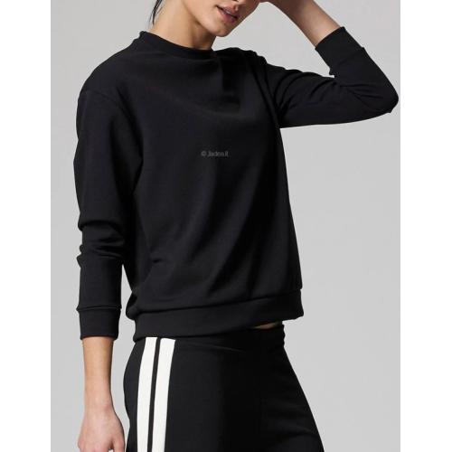 Il design minimal in colore nero la rende versatile e ideale sia per outfit casual che per look più ricercati. Linee pulite, vestibilità comoda e tessuto tecnico leggermente elasticizzato che valorizza la silhouette senza costringere. Perfetta in abbinamento a pantaloni o gonne per un look chic in ogni occasione.
