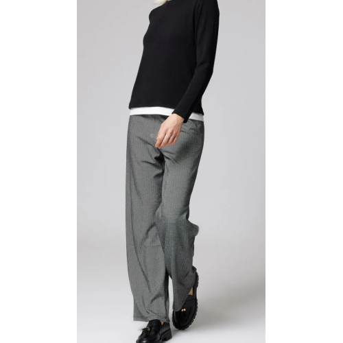 Il pantalone svasato in tessuto jacquard di Jadea è una scelta elegante e versatile per chi cerca un capo raffinato e comodo. Disponibile in nero gessato e grigio spigato, offre una vestibilità che valorizza la figura grazie alla gamba dritta e leggermente ampia.