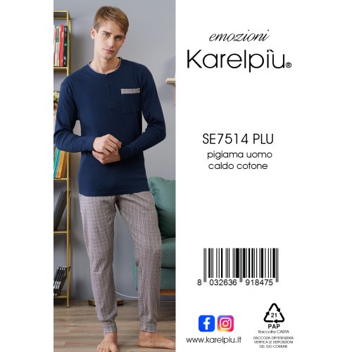 KAREL - PIGIAMA UOMO IN CALDO COTONE COD. SE7514PLU