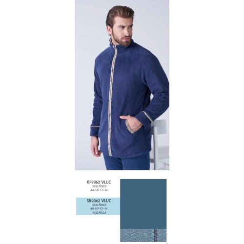 La giacca da camera da uomo SK9362VLUC in elegante tonalità blu acciaio è il capo perfetto per chi desidera unire comfort, praticità e stile raffinato nei momenti di relax domestico.