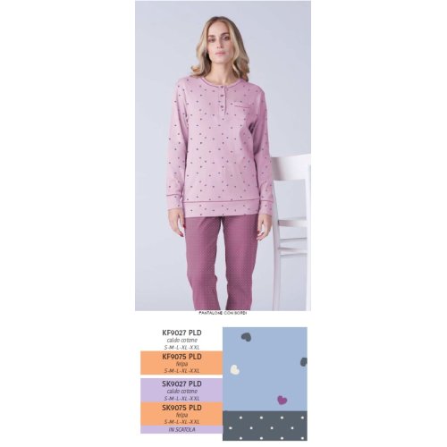 KAREL PIU'-PIGIAMA DONNA LUNGO SK9075PLD -(AZZURRO POLVERE )