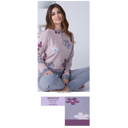 KAREL PIU'-PIGIAMA DONNA LUNGO SK9278PLD- (VIOLA E GRIGIO)