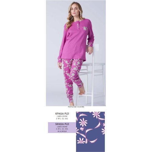 KARELPIU- PIGIAMA DONNA CALDO COTONE LUNGO SK9026PLD-(VIOLA)