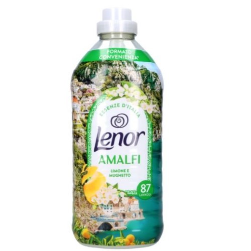 Lenor Ammorbidente concentrato Essenze Amalfi formato da 87 lavaggi. Rende i tuoi capi morbidi e profumatissimi, grazie alla sua fragranza Unica, i tuoi capi profumeranno come il primo lavaggio per una settimana. La nuova confezione ti garantisce 87 lavaggi in lavatrice con carico normale ed una freschezza eccezionale.